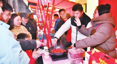 12月13日晚,寒潮来袭,武汉SKP龙虾主题消费区却热气腾腾、人来人往。一口口小炒锅冒着热气,鲜红油亮的小龙虾在灯光下闪烁着诱人光泽。顾客围拢在潜江龙虾品鉴台前,迫不及待地从盘中拎起一只,剥壳、取肉、入口,不时发出感叹。