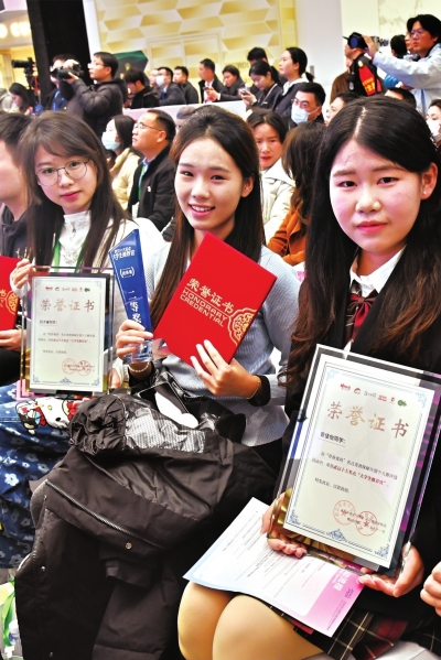 武汉十大名点“大学生推荐官”的高校个人和团体代表在2025武汉国际消费季暨跨年消费季启动仪式上。 长江日报记者詹松 摄 |