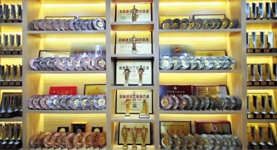中天六建荣誉室摆满奖杯。 长江日报记者詹松 摄 |
