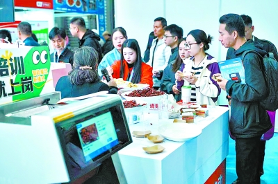 展会上,“肴滚智慧大厨”炒菜机器人引得众人围观。 |