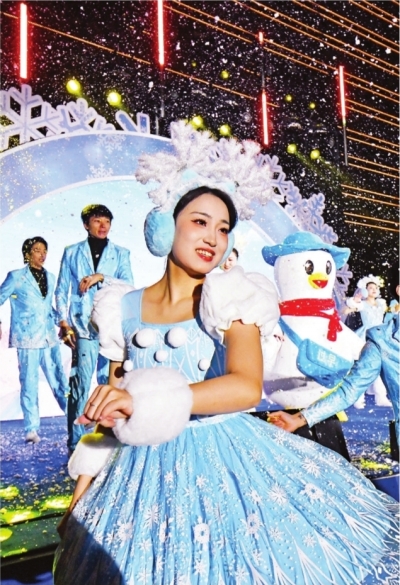 长江日报记者现场看到,冰雪嘉年华划分为冰雪童话区、暖意江城区和急速雪境区三大主题区域,集互动游戏、打卡拍照、文艺表演、商品展销于一体。在冰雪童话区,游客们踊跃参与“雪球大作战”“雪中寻宝”等趣味挑战。