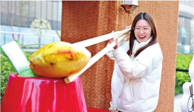 游客高兴地玩起火锅消消乐。 图片:长江传播研究院 |