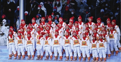2022年2月4日晚,“马兰花合唱团”用希腊语在第二十四届冬奥会开幕式上歌唱。 新华社记者李尕 摄 |