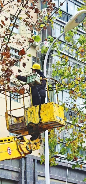 “我们主要是对遮挡信号灯、路灯的法桐进行高空修剪。”现场负责人陈先生介绍,“我们会加强定期巡查,及时修剪法桐增长过快的分枝。”
