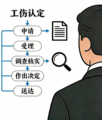 工伤认定的流程可以总结为:发生工伤、提出工伤认定申请、备齐申请材料、社会保险行政部门受理、作出工伤认定5个环节,具体如下: