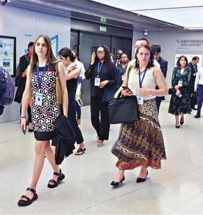 “中国碳市场建设进展与跨境碳交易合作”研讨班学员参观中碳登。 长江日报记者金文兵 摄 |