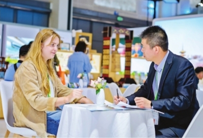 2025中国国际旅游交易会武汉展区,外国旅行商与武汉旅游企业进行洽谈。 |