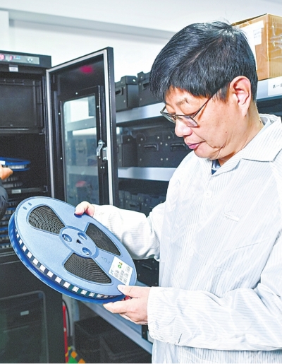 韩绍伟在检查生产的芯片产品。 本版摄影:长江日报记者史伟 实习生高云鹏 |