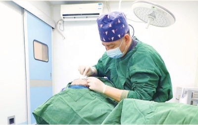 倾美医疗创始人赵涛正在做割眼袋手术。 |