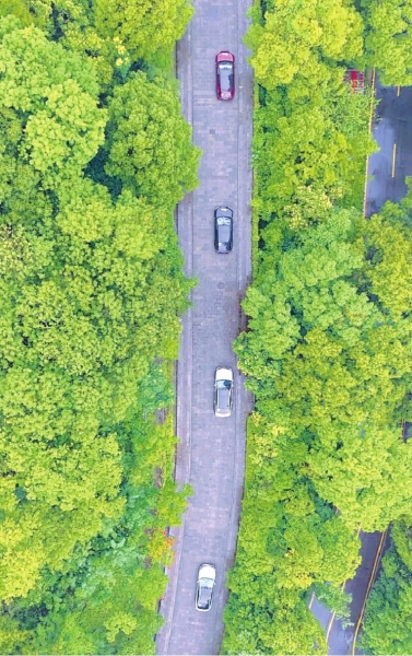 “风从支点来”中邮智行车队穿行青山绿水之中。 |