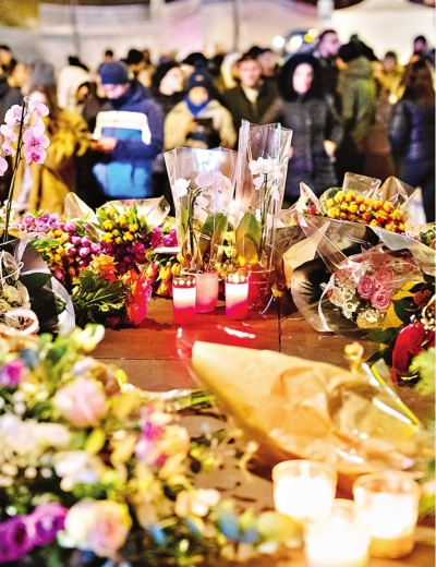 2026年1月1日,人们在瑞士克朗-蒙大拿发生火灾的酒吧外悼念遇难者。 新华社/美联 |