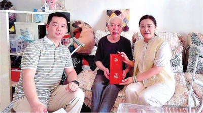 肖俊(右)上门走访老党员。 资料照片 |