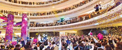 来购物的市民在武汉万象城里一起跨年。 |