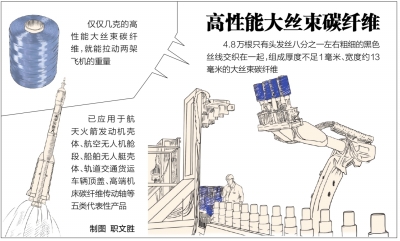 仅仅几克的碳纤维,就能拉动两架飞机的重量。这种号称“黑黄金”的新材料,大到运载火箭、民航飞机,小到高档羽毛球拍、钓鱼竿,都有它的身影。由于该材料生产技术复杂,相关技术长期受制于国外封锁,国内产业发展受限。