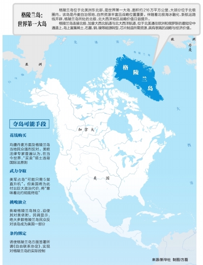 白宫声称,会为得到格陵兰岛“保留所有选项”。国际媒体和专家分析,特朗普政府可能通过以下四种手段达到目的,不过无论哪种手段都面临不小的障碍。