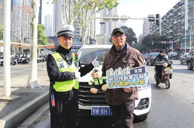 近日,武汉交警不定期在多个路口向文明礼让行人的驾驶员赠送文创纪念品,不少收到“小礼物”的市民都像胡先生一样,惊喜又感激。