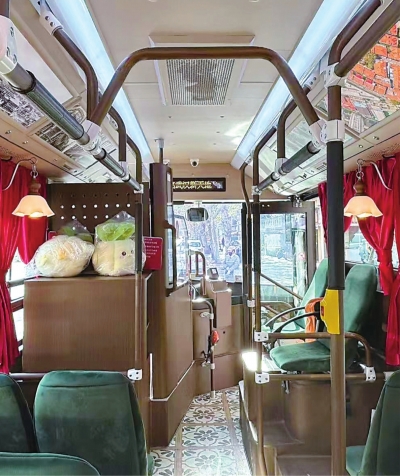 “金岸号”巴士内饰充满复古气息。 九派新闻记者阳丹 摄 |