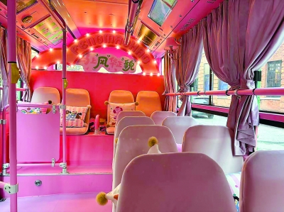“风貌号”巴士萌趣可爱的粉色内饰。 九派新闻记者阳丹 摄 |