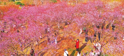 1月10日,趁着周末暖阳,市民游客纷纷前往硚口区竹叶海公园“梅花坡”,赴一场冬日花事之约。这里栽种着500余株红梅、宫粉梅、绿萼梅、白梅……如今枝头花苞次第绽放,花开近半,粉白相间、嫣红点缀,暗香浮动。阳光洒在花枝上,光影交织成景,吸引了众人驻足观赏、拍照留影,或定格花姿,或与亲友合影,欢声笑语萦绕花间,成为冬日城市里一道亮丽风景。