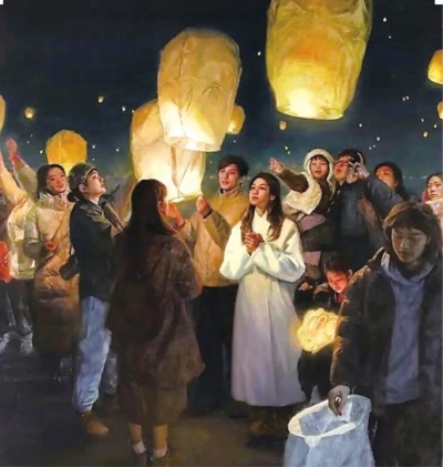 祈福天灯(油画)