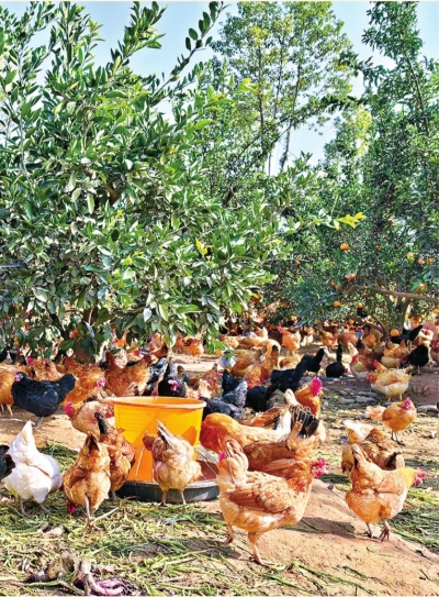 走进农场,山坡上的散养土鸡悠闲踱着步,它们啃虫草、啄谷粒,生长周期超过8个月,是普通肉鸡的2—3倍。“我们腌制时只用盐和少许花椒,尽量保留土鸡的原汁原味。”赵秀梅介绍,洪子山家庭农场采用“生态循环”种植养殖理念,稻谷加工后剩下的米糠和麸料成为土鸡、土猪的天然饲料,禽畜粪便经处理后回归田地,滋养果蔬。