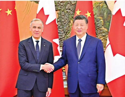 习近平指出,去年10月,我们在韩国庆州会见,开启了中加关系转圜向好的新局面。双方就恢复和重启各领域合作深入探讨,取得积极成果。中加关系健康稳定发展符合两国共同利益,也有利于世界和平稳定和发展繁荣。双方要本着对历史、对人民、对世界负责任的态度,推进构建中加新型战略伙伴关系,推动中加关系迈入健康、稳定、可持续的发展轨道,更好造福两国人民。