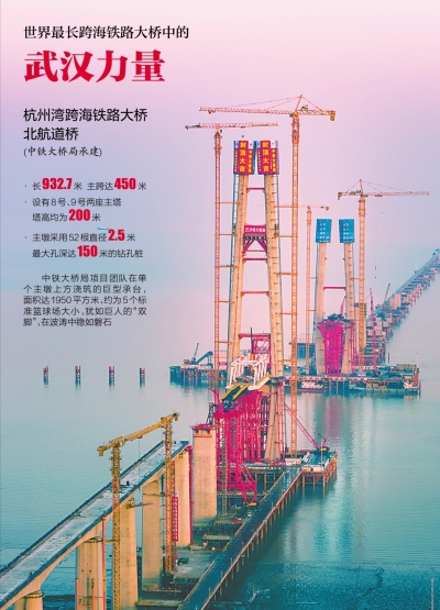 杭州湾跨海铁路大桥是南通至宁波高速铁路(简称通甬高铁)控制性工程,位于既有杭州湾跨海公路大桥以北,全长29.2公里,是目前在建的世界最长跨海铁路大桥。