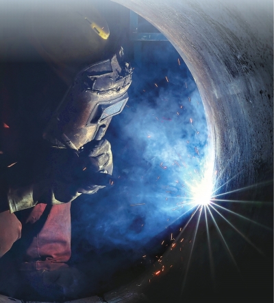 1月19日,在中铁科工集团武汉江夏制造基地,技术工人对盾构配件进行焊接作业。 新华社发(赵军 摄) |
