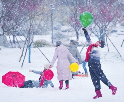 ■ 雪中逐乐 1月20日,东湖梅园景区里,市民在雪中嬉戏赏景。 长江日报记者彭年 摄 |