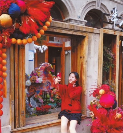 武汉街头,新春年味渐浓,吸引年轻人打卡拍照。 长江日报记者侯钰倩 摄 |