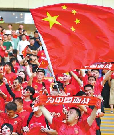 中国队球迷赛前在看台上为球队加油。 新华社发 |