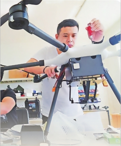 武科大工业智能与数字孪生信创产业学院学生在装配无人机。 |