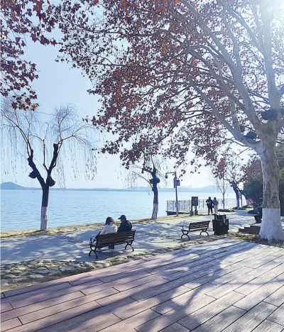 墨水湖公园座椅沿绿道错落摆放,既有面湖的,也有背湖的。 长江日报记者商佩 摄 |
