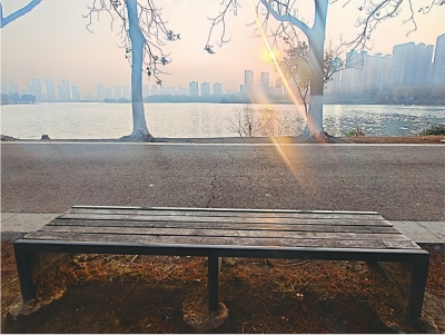 墨水湖公园内设有临湖观赏椅。 长江日报记者商佩 摄 |