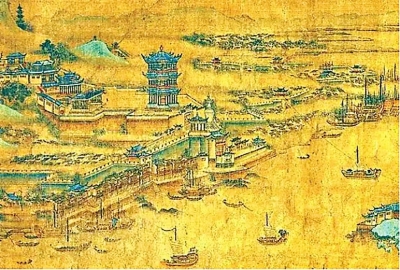 《江汉揽胜图》上,黄鹤楼和武昌城垣清晰可见。 |