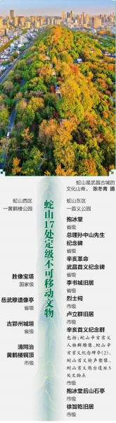 “除了黄鹤楼,蛇山上还留存着17处已定级的不可移动文物,以及明代武昌城墙遗址和武昌天文点、一等三角点、梅岭、小石泉、小罗浮等多处一般不可移动文物,时间跨度从南朝到抗战时期,长达千年。”黄鹤楼公园管理处文化研究与推广部(文物和非遗保护中心)负责人介绍。