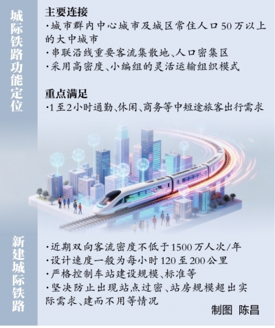 意见要求,新建城际铁路近期双向客流密度不低于1500万人次/年,设计速度一般为每小时120至200公里。严格控制车站建设规模、标准等,坚决防止出现站点过密、站房规模超出实际需求、建而不用等情况。