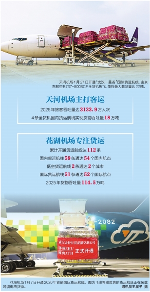 刘萌认为,天河机场和花湖机场形成了航空客货运“双枢纽”联动发展格局,提升武汉都市圈在全球航空物流网络中的地位,推动区域经济高质量发展。