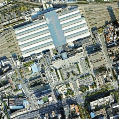 2024年,航摄影像下的汉口火车站轨道纵横、楼宇林立。 |