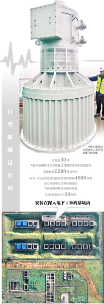 “可以把它理解成一个巨型的、用电驱动的‘陀螺’。”中核汇能湖北公司负责人戴承钧用了一个生动的比喻,向记者揭示飞轮储能的原理。这个“陀螺”自重近30吨,被安装在深入地下4米的基坑内,依靠磁悬浮技术在接近真空的环境中高速旋转。“一旦用电驱动它达到额定转速,它便能在极低损耗下依靠惯性持续运行,设计寿命可达20年。”