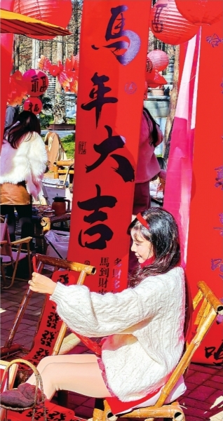 位于岳飞街原法租界消防队旧址的“半巷里”美学空间,则将喝茶融入新中式生活美学,定期举办点茶、插花等活动。门口新设的马年新春景观十分醒目:一匹彩绘骏马昂首挺立,绒球在风中轻摇,吸引不少年轻人拍照留念。
