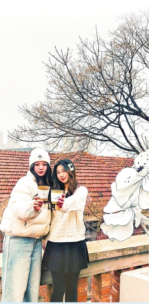 1月27日下午,阳光洒入咸安坊。记者走进一栋老建筑,新开的融合业态空间“Lesimos”里面包飘香。一楼是烘焙区,二楼集合了咖啡、服装与饰品,而最吸引年轻人的是藏于三楼的露天平台。一株枝干遒劲的老树静立于此,与红瓦屋顶、远处现代楼宇共同构成一幅新旧交融的画面。几位年轻人正将咖啡杯、老树、红瓦屋顶与蓝天收入镜头。两位从北京来的女孩边拍边感叹:“氛围感真好,很出片。”