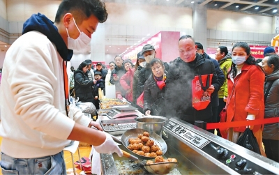 ■ 武汉国际会展中心 武汉国际会展中心举办“迎春年货大集暨首届武汉圆子节”,吸引市民品尝购买。 长江日报记者高勇 摄 |