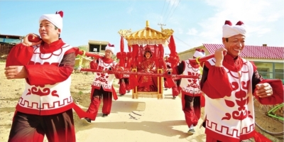 陕西榆林的牛小成选择了更隆重的传统形式。2025年5月,他的婚礼轰动乡里:32抬大轿,锣鼓开道,陕北大秧歌非遗表演紧随其后,十里八乡围观。“那就是我梦寐以求的婚礼。”牛小成回忆时依然激动不已。