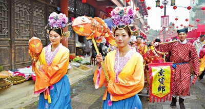 鱼灯巡游及复古卖货郎。 长江日报记者詹松 摄 |