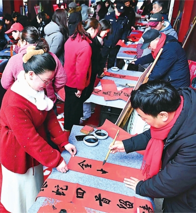 2月9日,武昌红巷画家村热闹非凡,30余名艺术家齐聚,免费为市民写春联,送上新年的美好祝愿。 长江日报记者高勇 摄 |