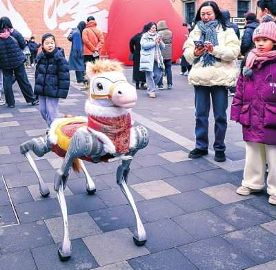 咸安坊非遗大集上,AI机器狗变身小马驹,吸引了游客目光。 长江日报记者曾熙来 摄 |