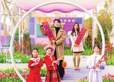春节临近,中山公园3万余株郁金香集中绽放,为市民和游客呈现一个花香四溢、年味浓郁的中国年。