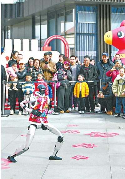 2月15日,智能人形机器人为游客表演咏春拳。 长江日报记者史伟 摄 |