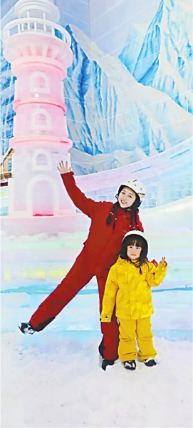 游客在WS热雪奇迹体验百米冰上过山车后开心不已。 |